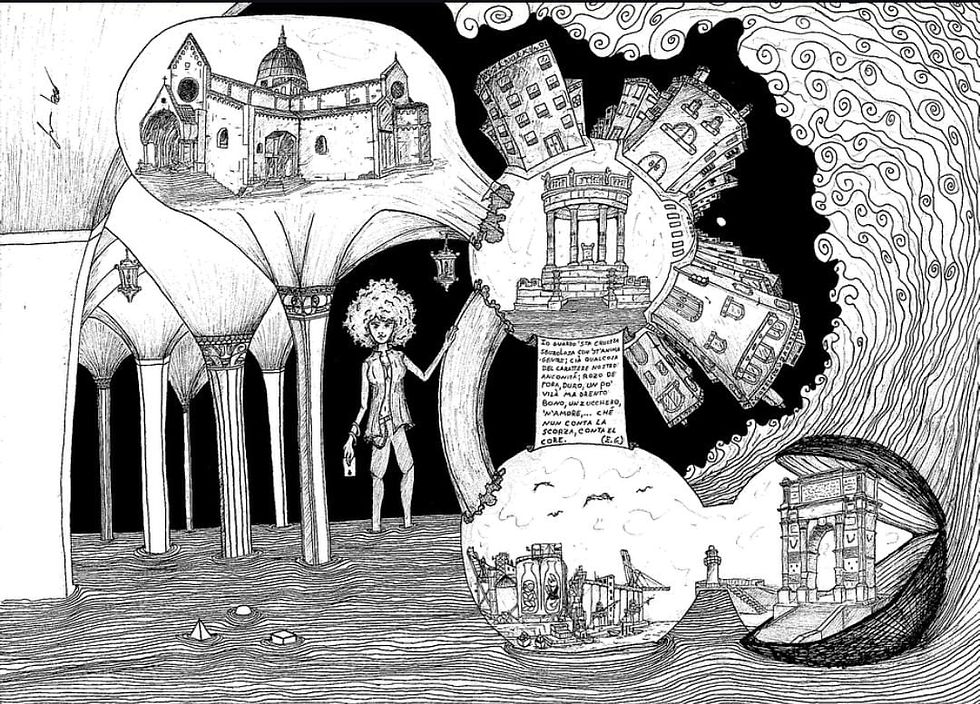 In quel baratro, la mano cerca istintivamente qualcosa a cui aggrapparsi e trova una matita. Il disegno diventa il suo primo linguaggio del dolore. E' in quel silenzio interrotto solo dal fruscio della carta che inizia a ritrovare se stesso attraverso linee surrealistiche.